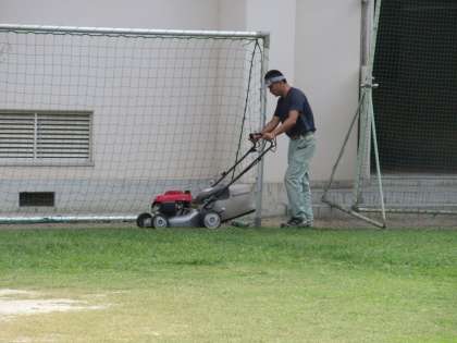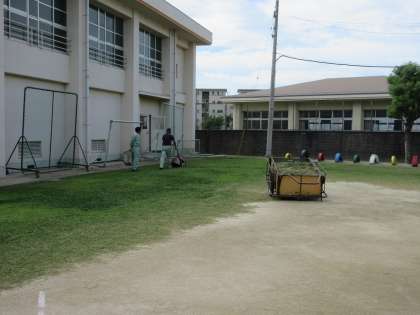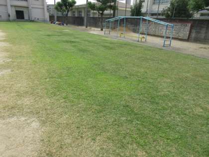 冬芝の種まきの前に、芝刈りをしました。運動会の前に、芝が短くきれいになりました。