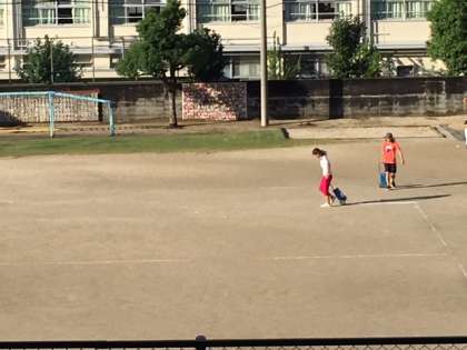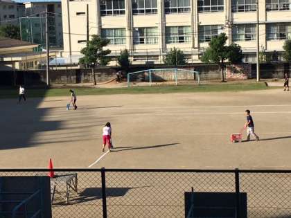早朝から運動場の整備