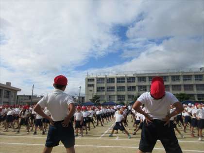 令和初の運動会〜熱く盛り上がろう〜 開会式2 公開日 2019/10/07 更新日 2019/10/08 できごと 開会式、準備体操 運動会の歌では、子どもたちの歌声が響きました。その後、 準備体操でしっかり体をほぐしました。 いいね(0)