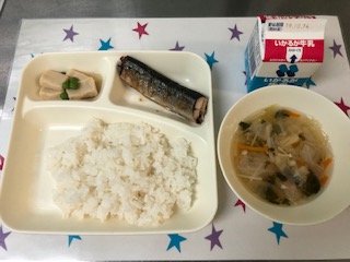 8日の給食は、さんまのさんしょう焼き・すまし汁・高野どうふの煮もの・ごはん・牛乳です。