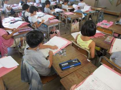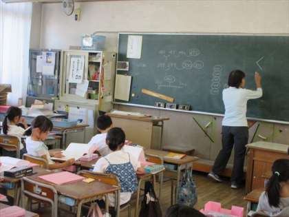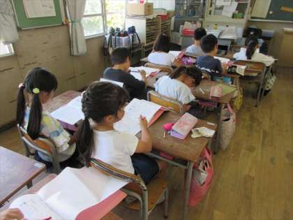 2年1組の4時限目は、算数の授業です。計算練習のプリントを答え合わせしていました。