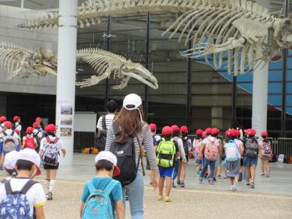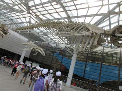 自然史博物館の前には、シラスクジラの標本がかざってあり、驚きました。