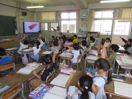 2年1組 算数 公開日 2019/10/15 更新日 2019/10/15 2年生 10月15日(火) 2年1組では、3時限目算数の授業です。 大画面TVに映された机を使って、掛け算の勉強です。 いいね(0)