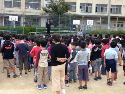 週初めであり、1時間目が始まる前の時間には全校朝礼があります。校長先生、生活指導の先生よりお話がありました。内容は、今週土曜日にある創立40周年記念についてです。学校についての歴史や創立40周年にやるにあたってのみんなの心構えについてでした。