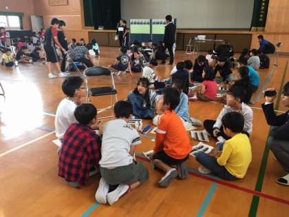 今日の3時限目は、3年・6年が合同で班を作って、取り組んでいます。