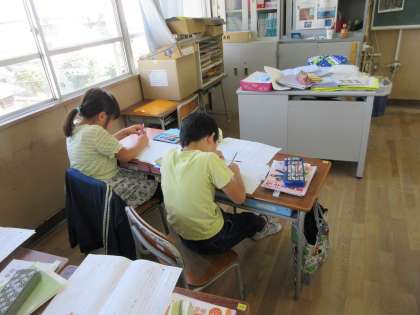 10月28日(月) 3年1組では、4時限目国語の授業です。 原稿用紙に文章を考えて書いています。