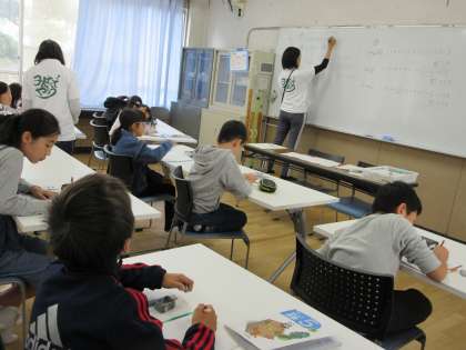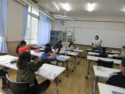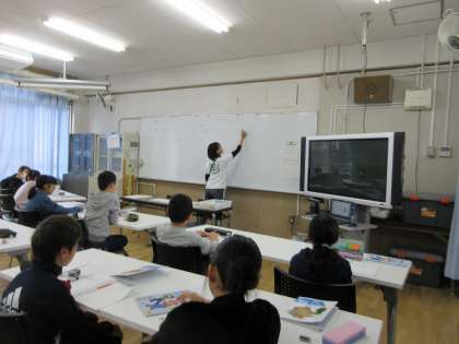 多目的室では、先生の問いかけに、手を挙げて、発表する姿が見えました。