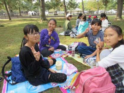 飛火野まで移動し、待ちに待ったお弁当タイムです。