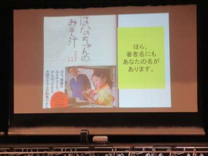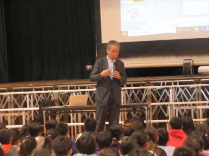 5年生は、3・4時限目に講堂に集合し、区役所主催の食育講演会が行われました。前半は、「はなちゃんのみそ汁」のお話でジーンと胸に迫りました。