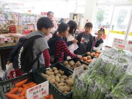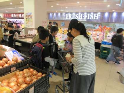 班で相談したカレーを作るため、限られた予算の中で買い物に行きました。