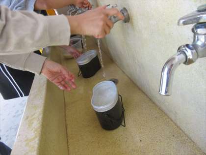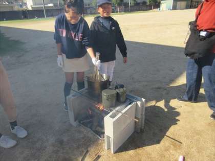 お米を洗って、飯盒の準備。食材も炒めます。