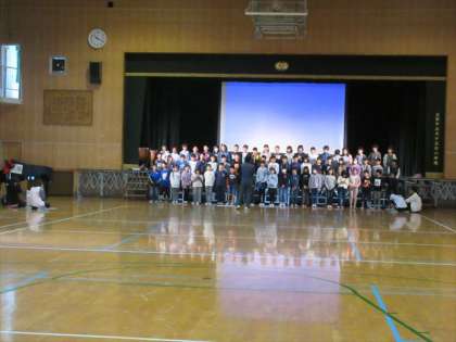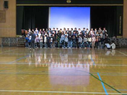 11月5日(火) 4年生は、2時限目に講堂に集まり、学習発表会の練習をしています。