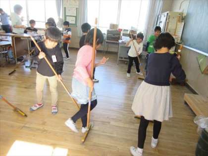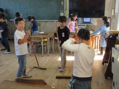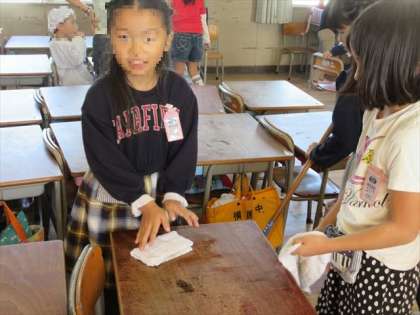 2年1組の教室を掃除する様子です。雑巾の使い方も上手ですね。