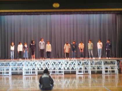 11月5日(火) 5年生は、5時限目講堂に集合して発表会の練習です。台本を見ながら、セリフや舞台での動きをやっています。