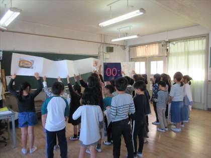 11月5日(火) 3年2組も 5時限目に、発表の練習をしています。大きな声ではっきりと、みんなで声も合わせています。