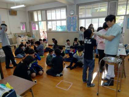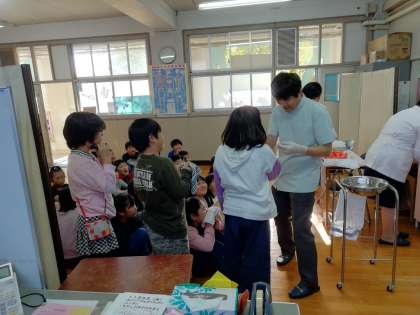 フッ化物塗布 4−1 公開日 2019/11/06 更新日 2019/11/06 できごと 11月6日(水)5時間目 サンスターの歯科衛生士の方と多田歯科校医先生に歯が強くなるための フッ化物を塗布してもらいました。 なぜフッ化物を塗布するのか?などを勉強し、再度むし歯の原因などを確認しました。そして、自分たちの生活を振り返ってむし歯になる原因はないかなど真剣に考えていました。またフッ化物塗布の感想を聞いてあげてください。 いいね(0)