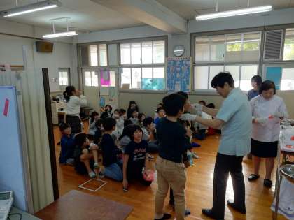 サンスターの歯科衛生士の方と多田歯科校医先生に歯が強くなるための