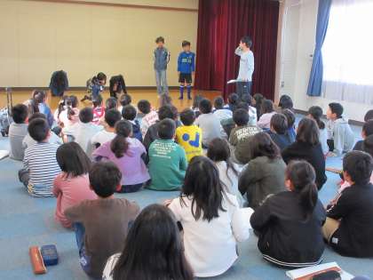 4年生は、1時限目に集合して、学習発表会の練習です。