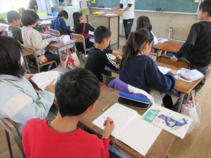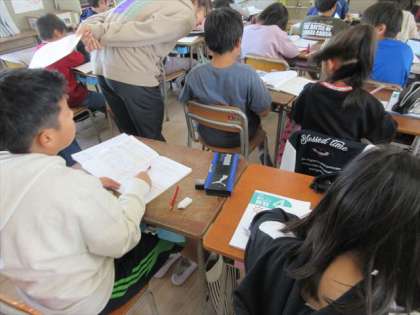 11月13日(水) 4年1組では、3時限目算数の授業です。黒板の内容を丁寧に書いています。