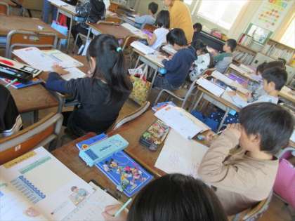 11月13日(水) 2年1組では、3時限目 九九を覚えながら、かけ算の問題を書いています。