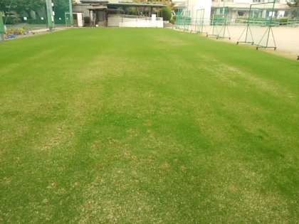10月16日、井高野ゴルフセンターのご協力で冬芝の種をまきました。その種が発芽し、今は、色鮮やかな緑色の芝になっています。まだ児童は入れませんが、見るだけで心が癒される色になっています。
