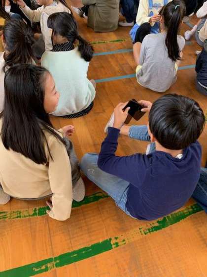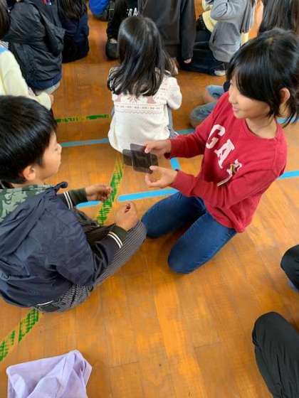 『偏光板』で不思議に見える世界を体験しました。そして、光の性質を説明してもらいました。
