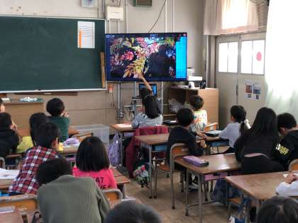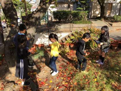 教室に戻って撮影した写真をもとに、秋紹介をしました。