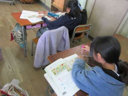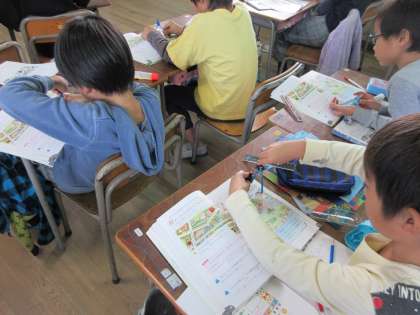3年1組は、4時限目算数の授業です。