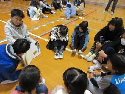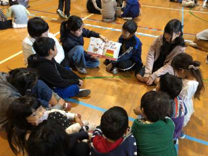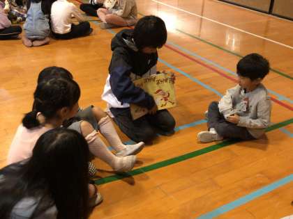 今日の児童集会は5年生が読み聞かせをしてくれました。