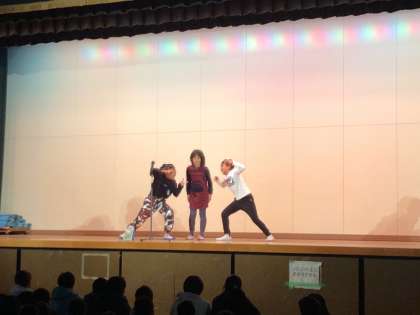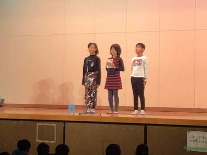今週土曜日に行われる書評漫才グランプリに出場する児童が、書評漫才を披露してくれました。