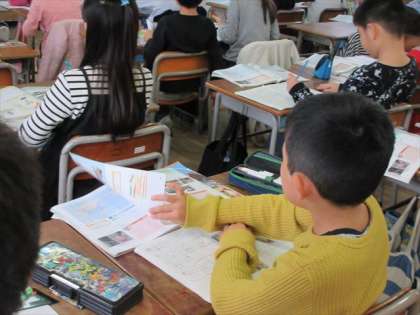 3年2組は、3時限目社会の授業です。いつも使っている「消しゴム」を作る工場の勉強をしました。