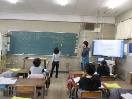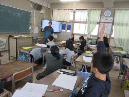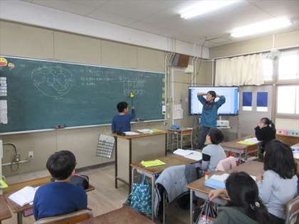 4年1組では、5時限目算数の少人数学習の授業です。位取りの勉強で、前に出て答えています。