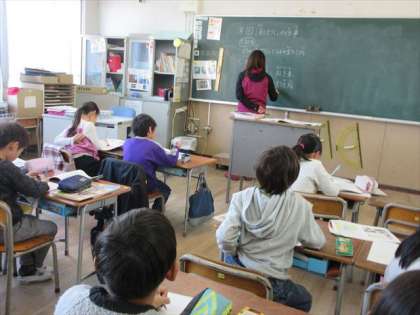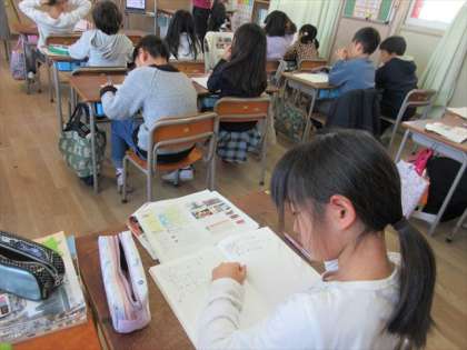 3年1組は、4時限目社会の授業です。消防署の人達の仕事について学びます。黒板をしっかり写しています。