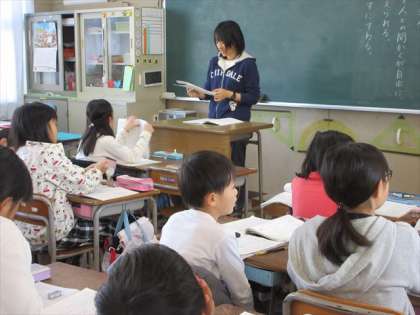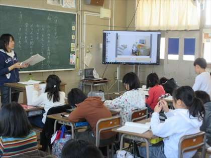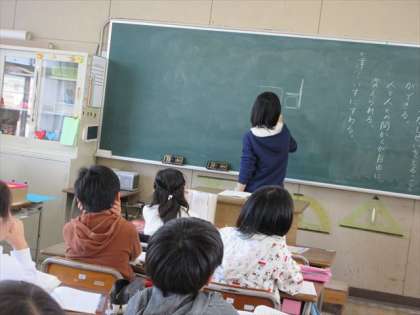 4年2組では、4時限目国語の授業です。和室、洋室の特徴を考えてまとめています。