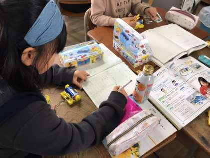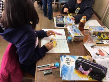 乾電池、豆電球を使って、電気が流れるのは、どれかを調べています。