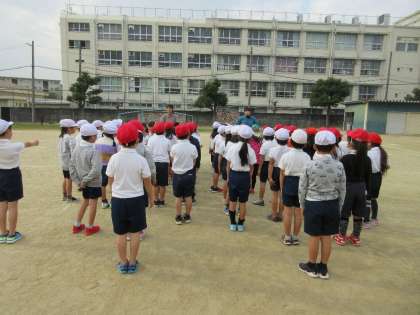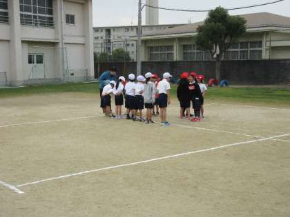 集合で持ち物や整列の指導を受けましたね、気を付けましょう。今日は、4つに分かれて、ドッジボールをしました。