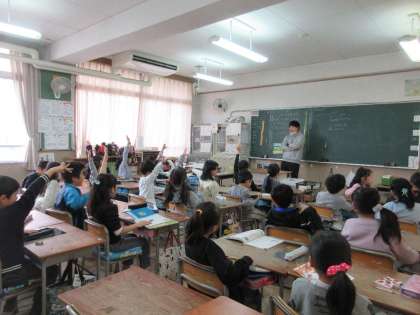 掛け算の九九を席の順にあたって一人ひとりつないで答えていきます。