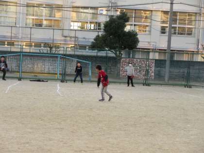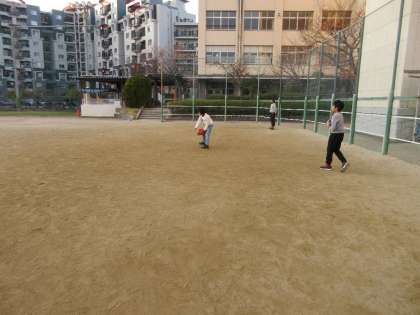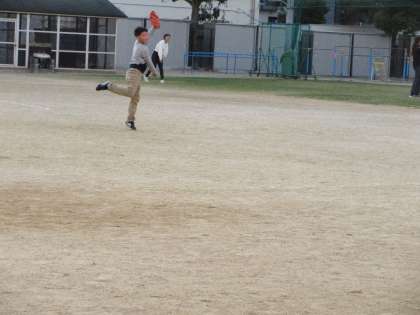 放課後、参加者は、グローブを持って運動場に集まりました。2〜3人でボールを投げ、キャッチする練習をしました。先生も加わって、楽しく投げたり、ボールを追いかけたりしました。