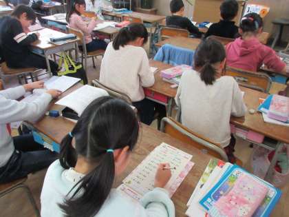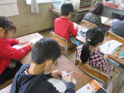 ドリルの計算練習を一生懸命に取り組んでいます。