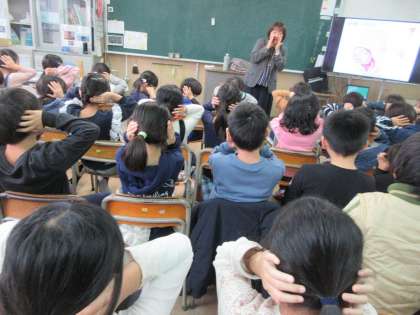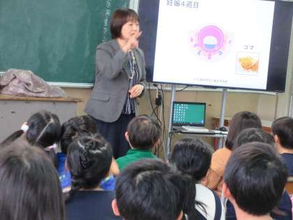 3年生は、3〜4時限目に「いのちと性の教育」の授業で講師の方が来てくださいました。3年2組の教室に全員が入り、話を聞きました。