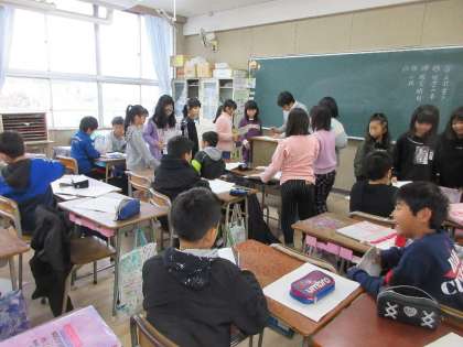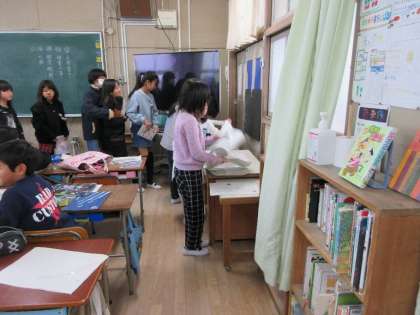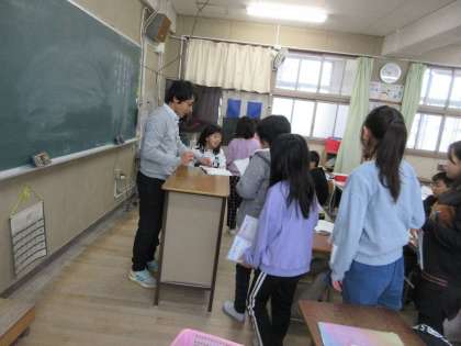 4年1組では、提出するものを見てもらったり、配布するプリントを順番に取ったりして進めています。
