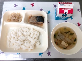 10日の給食は、さばのみそ煮・すまし汁・もやしのゆずの香和え・ごはん・牛乳です。