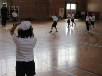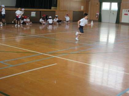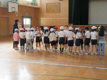1年1組は、3時限目体育の授業で、講堂で行いました。
