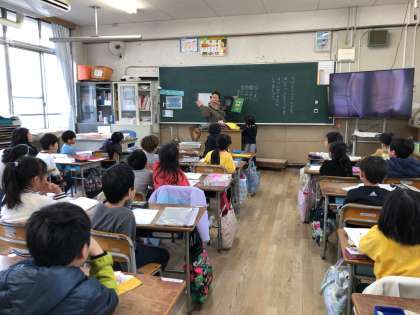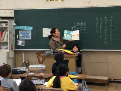 英語の節分の本には子どもたちの“Go away”の元気な声が聞こえてきました。