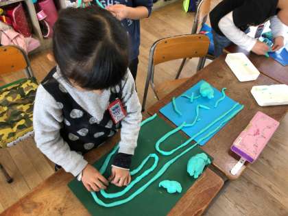 5時間目に図画工作でねんどをしました。