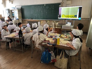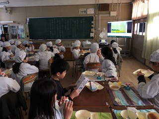 給食週間最終日は、「キャベツくん」という絵本を給食委員会の子ども達が読んでいるビデオを給食時間にテレビで放送しました。