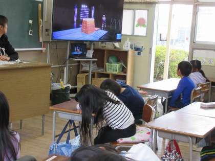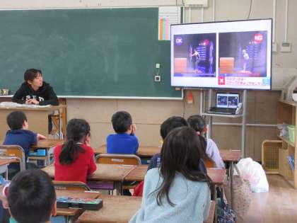 大型TVで、跳び箱のとび方をみて学習しています。とび方のコツがわかったでしょうか?