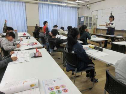 多目的室2の教室では、問題の答えを確認するため、「もとになる量」「比べられる量」「割合」を考えていました。