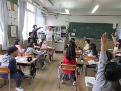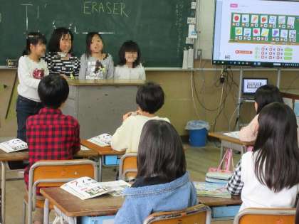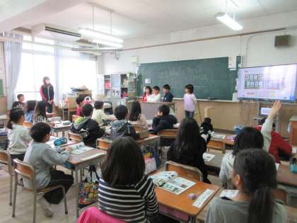 3年1組は、4時限目外国語活動の授業をC-netのチャタジー先生と一緒に学習しました。3〜4人が前に出て、「What is this?」の問いに対して同時に答えます。誰が何と言ったかを当てるゲームが盛り上がって楽しみました。