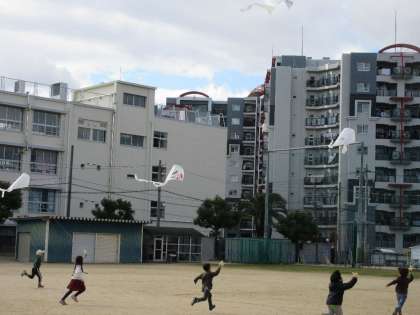 1年1組は、5時限目 運動場に凧揚げをしました。